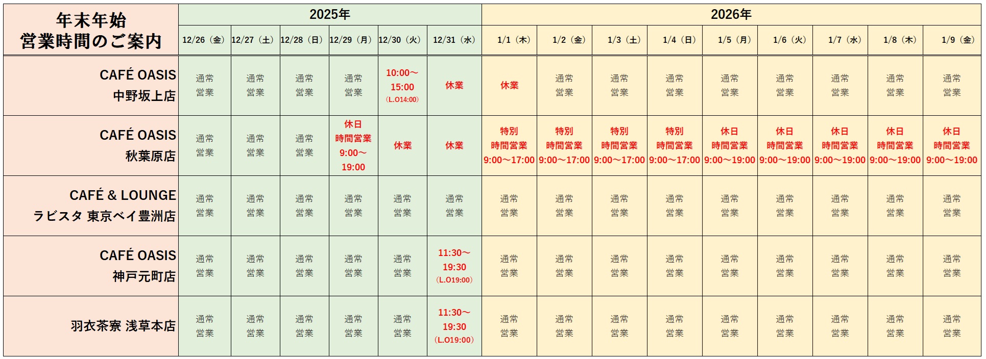 日頃より弊社外食店舗をご利用いただき誠にありがとうございます。年末年始営業につきまして 、下記の通りご案内申し上げます。